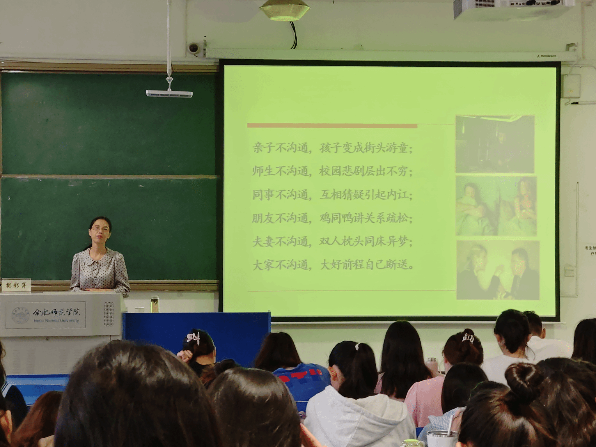 本网讯 为进一步提升小学教育师范生的沟通合作能力,促进实习工作的顺利开展,9月28日上午,教育心理科学学院在锦绣校区逸夫楼A201开展师范生核心素养交流指导活动。活动由唐银副主任全程主持,邀请教育心理科学学院教授樊彩萍开展《有效沟通成就智慧教师》主题交流活动。2021级小学教育专业全体学生参加此次活动。