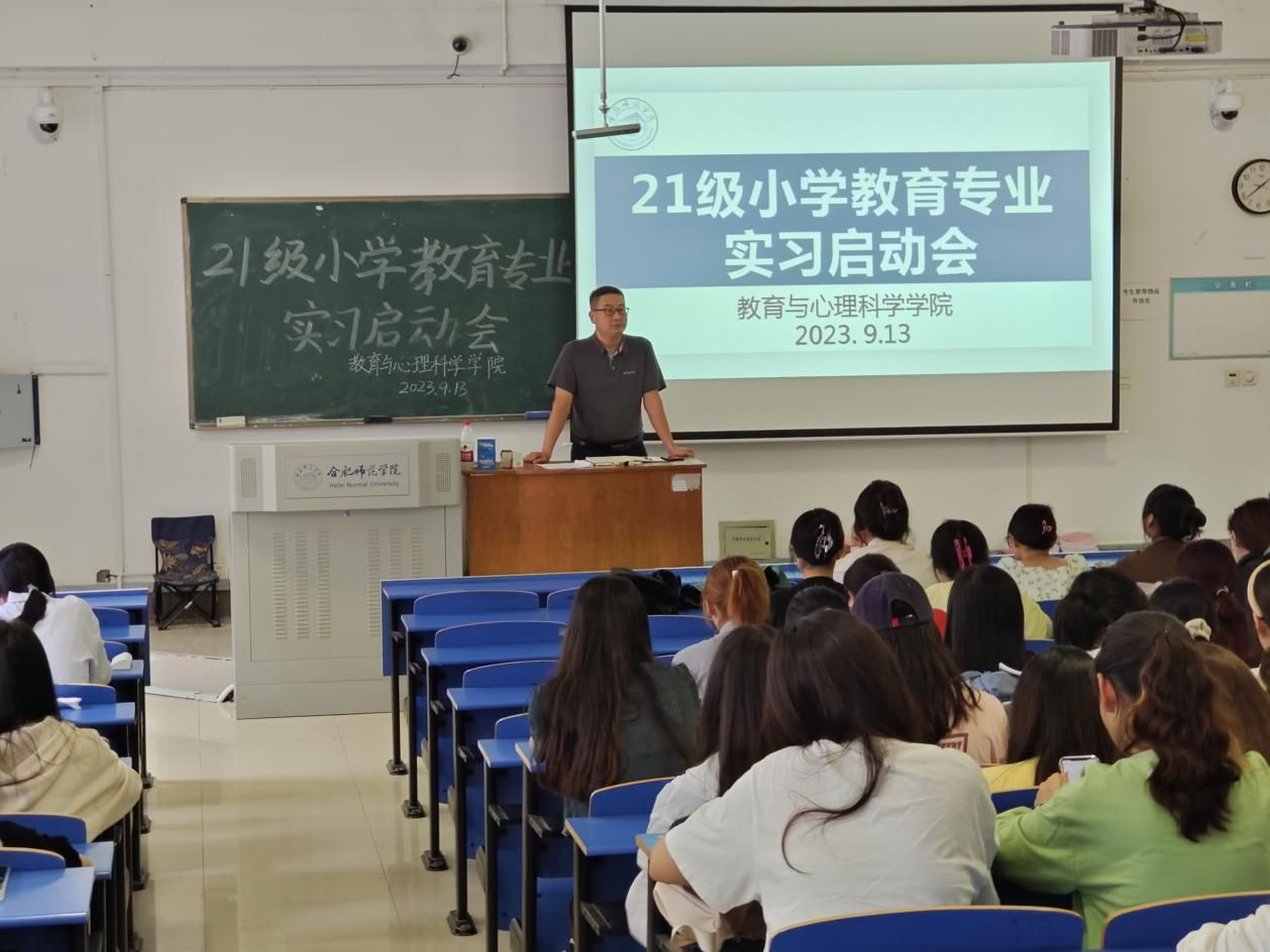 (本网讯)为顺利推进小学教育专业实习工作,9月13日下午,betway西汉姆联官网在锦绣校区逸夫楼A106教室开展2021级小学教育专业实习启动会。学院党委副书记陈帅,副院长胡连峰,学生指导教师孙晓青、韦立君、杨婷、苏炫等出席会议,2021级小学教育专业全体同学参加会议。会议由教育系副主任唐银主持。