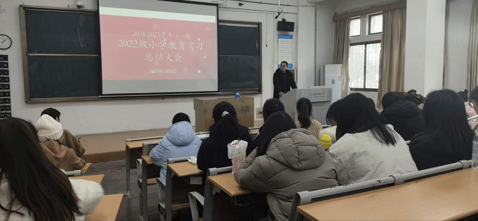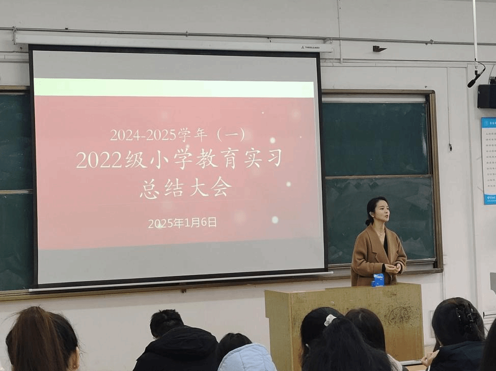 为提高学生教育实习效果,提高学生学习获得感,2025年1月6日下午,betway西汉姆联官网在锦绣校区博约楼举办小学教育专业实习总结汇报大会。betway西汉姆联官网副院长胡连峰,以及2022级小学教育专业全体学生参加汇报活动,总结大会由教育系副主任唐银主持。