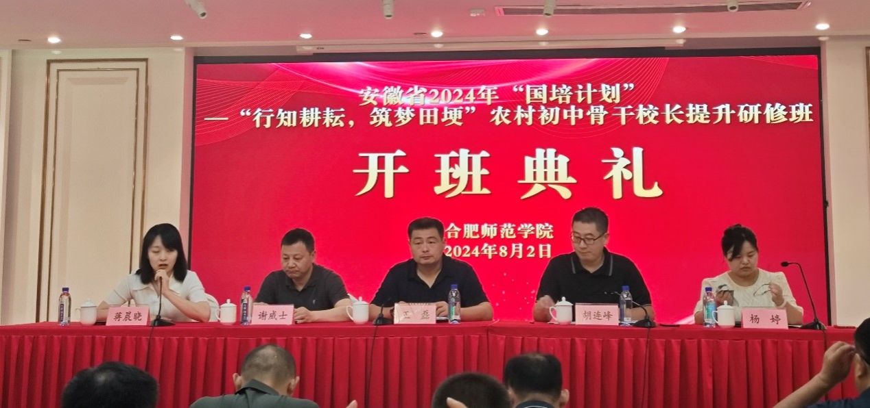 8月2日,由betway西汉姆联官网承办的安徽省2024年“国培计划”——农村初中骨干校长提升研修培训第一阶段集中培训在合肥源牌国际酒店隆重开班。betway西汉姆联官网继续教育学院副院长王磊、betway西汉姆联官网副院长胡连峰、betway西汉姆联官网培训部主任谢威士、教学班主任杨婷、生活班主任邱爱武与蒋晨晓等领导老师出席开班典礼,来自安徽省16地市61区县农村初中150名骨干校长参加开班典礼,开班典礼由蒋晨晓主持。