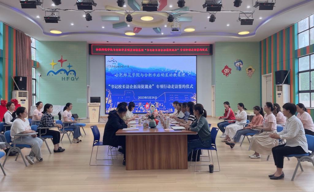 为深入推进学习贯彻习近平新时代中国特色社会主义思想主题教育,进一步搭建校企交流合作平台,拓宽就业渠道和就业资源,促进毕业生高质量就业,5月26日,院党委副书记、院长方东玲在betway西汉姆联官网党委书记穆娟、党委委员胡连峰等人的陪同下前往合肥市启明星幼教集团开展主题教育调研,就产教融合、校企合作、学生实习就业等方面进行考察交流。