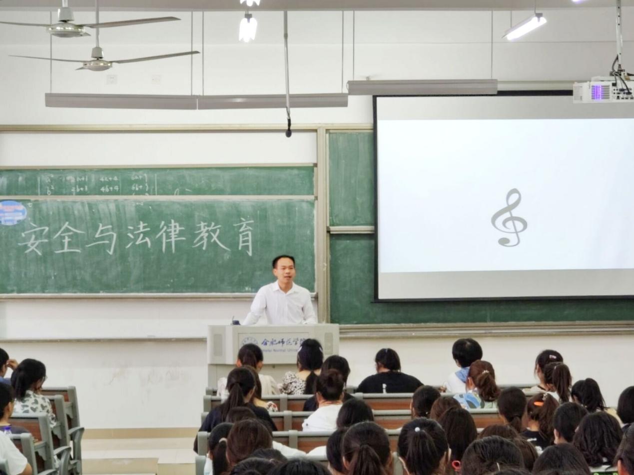 智者以法护身心,同心共建安全校园。为了增强新生的安全与法治意识,保护新生的个人及财产安全,2022年9月14日上午十点,教师教育学院组织全体新生在铭传楼A305和A309教室开展了2022级新生安全与法律教育主题班会。班会由辅导员胡蝶主持,滨湖综合管理办公室胡强胜老师主讲,教师教育学院全体新生参加。