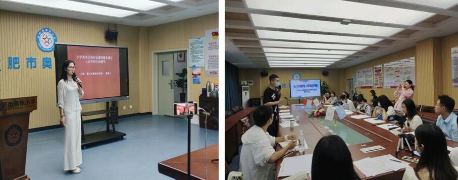 2022年6月14日下午,betway西汉姆联官网教师教育学院与蜀山区教体局教研室在合肥市奥体小学顺利举办了“绘画与心理”教学研讨活动。本次活动由betway西汉姆联官网教师教育学院心理系主任吴桂翎带队,李靖老师与裴章云老师主讲,2019级、2020级、2021级应用心理学专业40多名学生与蜀山区美术教师代表参加了线上线下研讨活动。