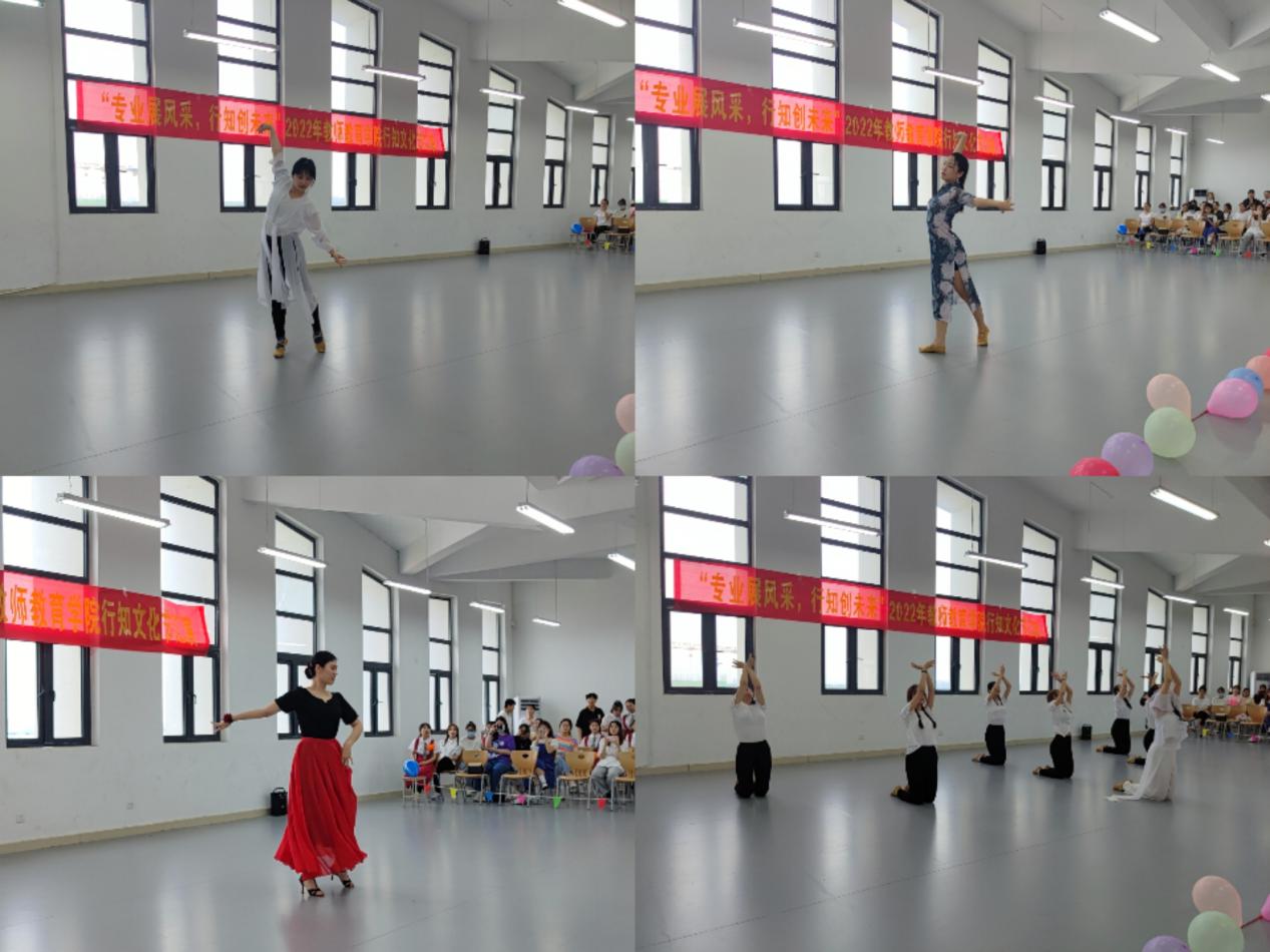 汇演遵循全面性、自愿性、导向性、激励性原则,以“专业展风采,行知创未来”为主题。节目形式多样,内容丰富,分为第一部分舞蹈比赛:独舞、双人舞、维吾尔族舞、群舞和第二部分社团成果展示:舞蹈、空竹、心理剧、合唱等共十五个节目。现场气氛热烈,台下座无虚席,观众们热情参与,掌声雷动。在舞蹈比赛中,学前教育,小学教育,应用心理学三个专业的同学们,依托各自专业特色,各显神通,在台上舞动青春,展示专业技能。经过激烈的比拼,最终评出:一等奖维吾尔族舞(学前教育)、和探窗(小学教育)。二等奖萱花草(学前教育)、万疆(小学教育)、仰世而来(应用心理)sincerity(应用心理)。三等奖雪落下的声音(学前教育)、生生世世爱(小学教育)、繁花(小教)、小鸡恰恰舞(应用心理)。