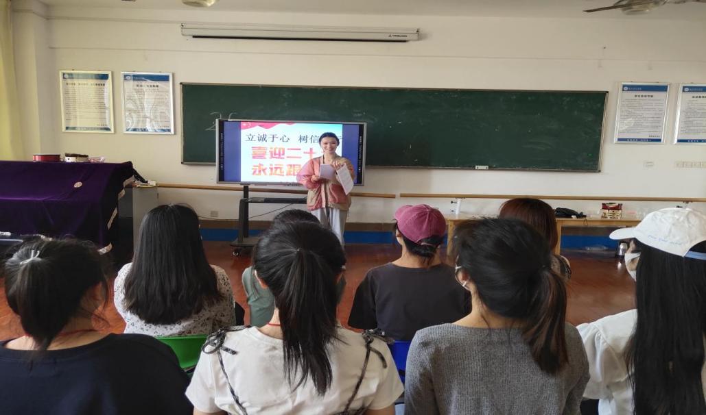 2021级学前教育班开展“立诚于心树信于行喜迎二十大永远跟党走”的主题班会,结合诚信感恩典型案例,引导学生认识到诚信感恩的重要性,引导学生践约守信、诚实做人、诚信考试.最后,同学们进行了诚信宣誓和诚信签名。