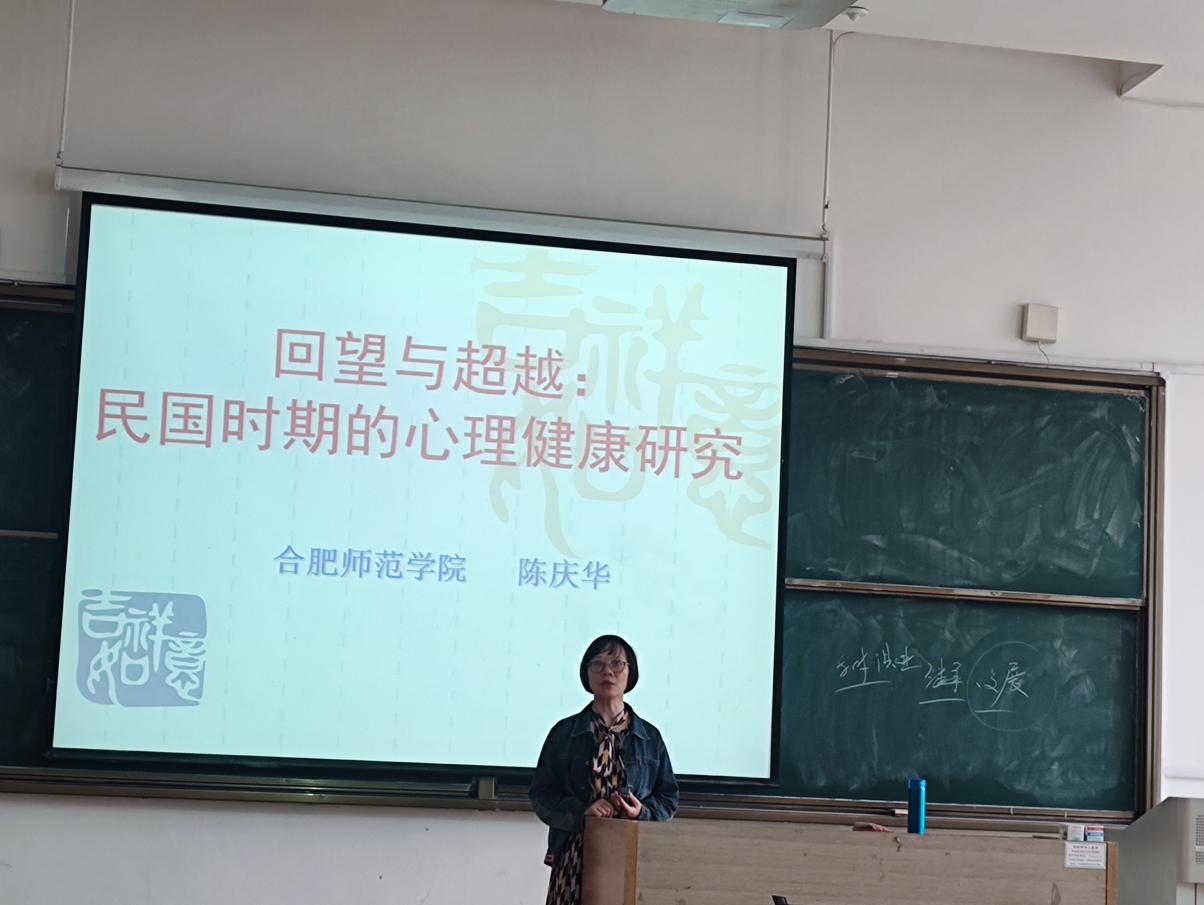 2022年4月27日下午,教师教育学院副教授陈庆华老师在锦绣校区博约楼108教室举行了“民国时期心理健康研究”学术报告,2019级应用心理学班学生全程参加了此次专题讲座学习。