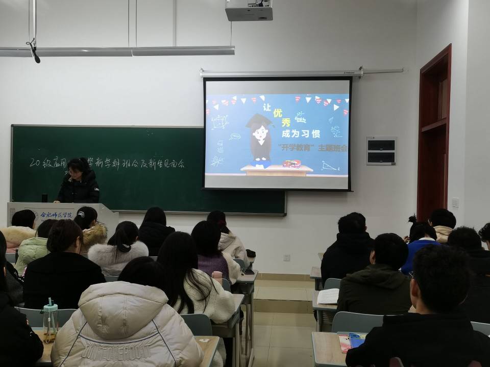 在学生报到期间,教师教育学院在三个校区分别召开了新学期开学教育主题班会,及时了解学生的思想动态,引导学生快速进入学习状态,养成高度自律的学习习惯,并针对校园网贷、用电安全、财产安全等做了强调。各辅导员也针对医保报销、班级建设等工作做了进一步部署。