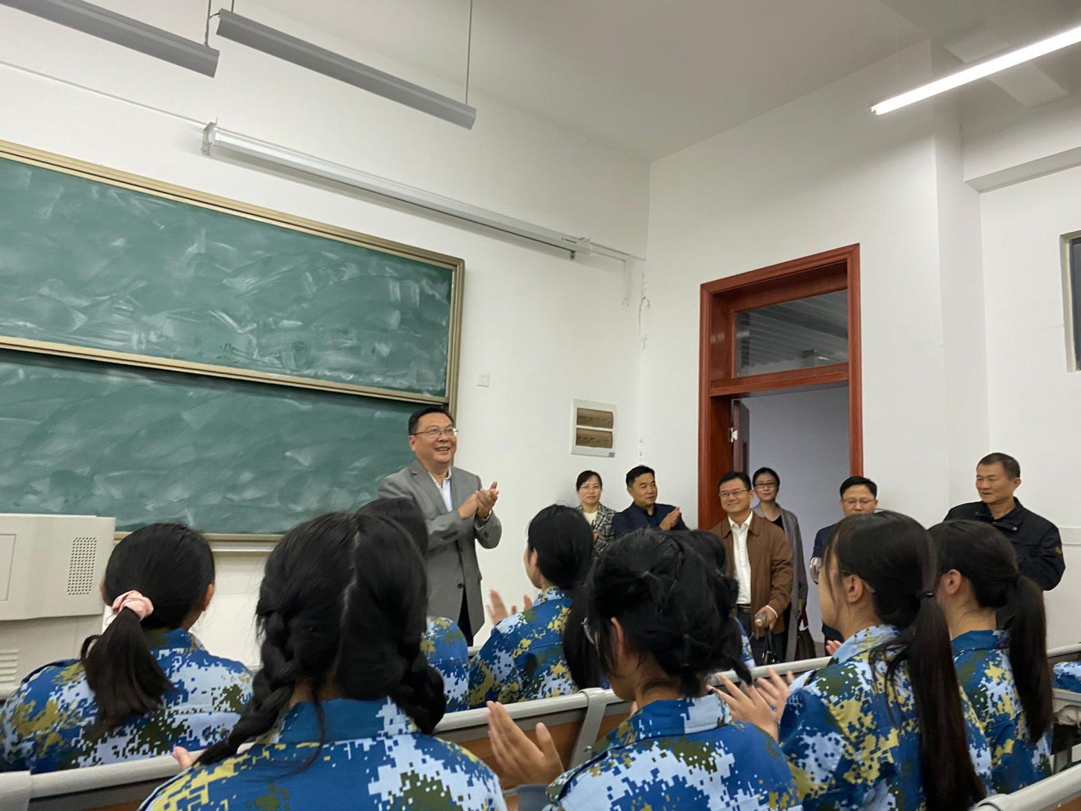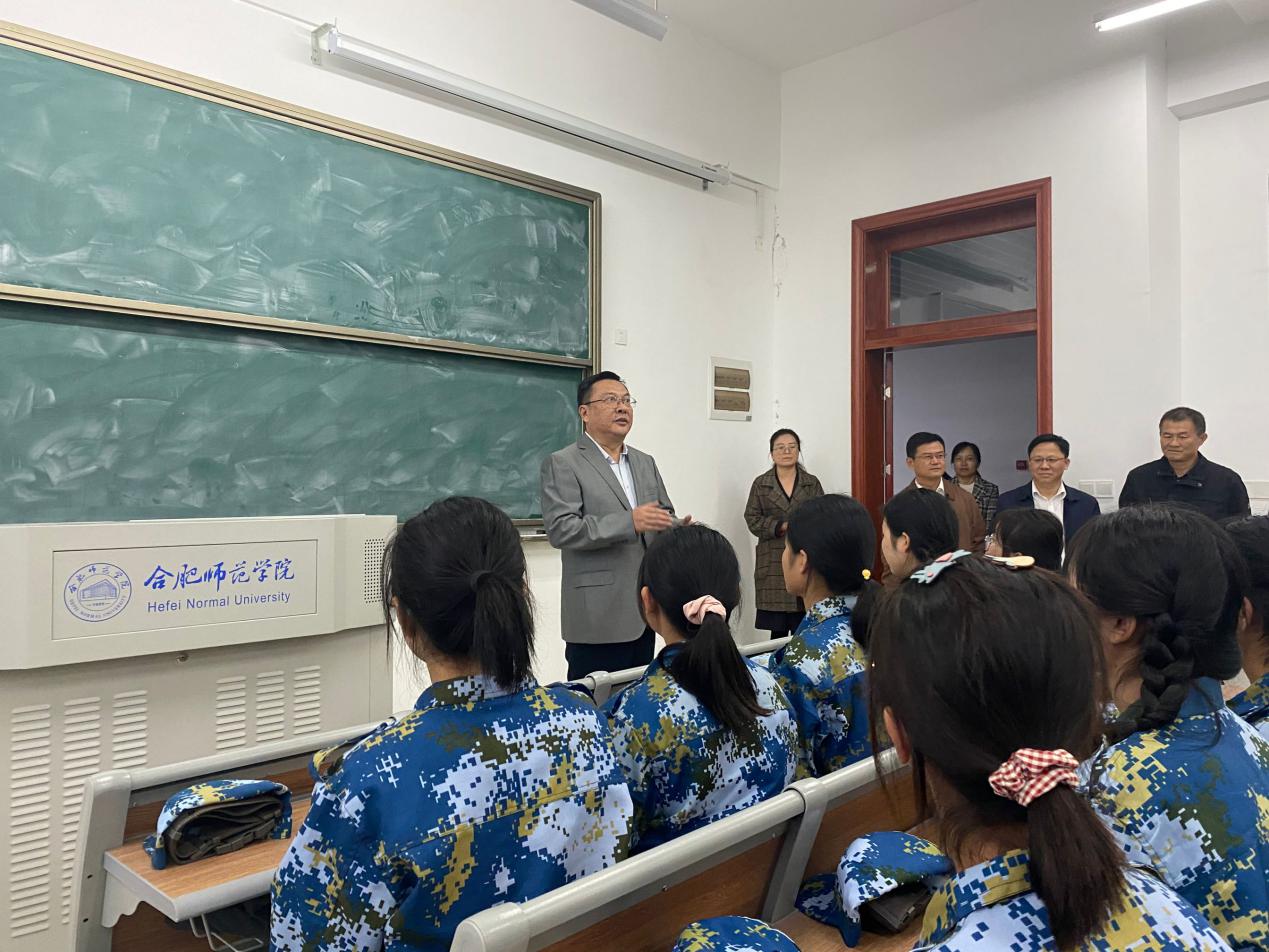 教师教育学院的新生以经久不息的掌声欢迎徐书记一行人的到来。“军训中的合师青年是一道亮丽的风景线。”徐成钢书记看到同学们挺拔的坐姿、整齐的着装、认真的态度,感叹道:“betway西汉姆联官网又注入了一股新生力量”。他祝贺同学们迎来了一个崭新的人生阶段,军训是大学生涯中最值得珍惜和回忆的。通过军训,同学们不仅能学到国防知识,还能学习到人民解放军艰苦奋斗、吃苦耐劳,爱国奉献、不怕牺牲,勇敢顽强、坚韧不拔的优良革命传统。