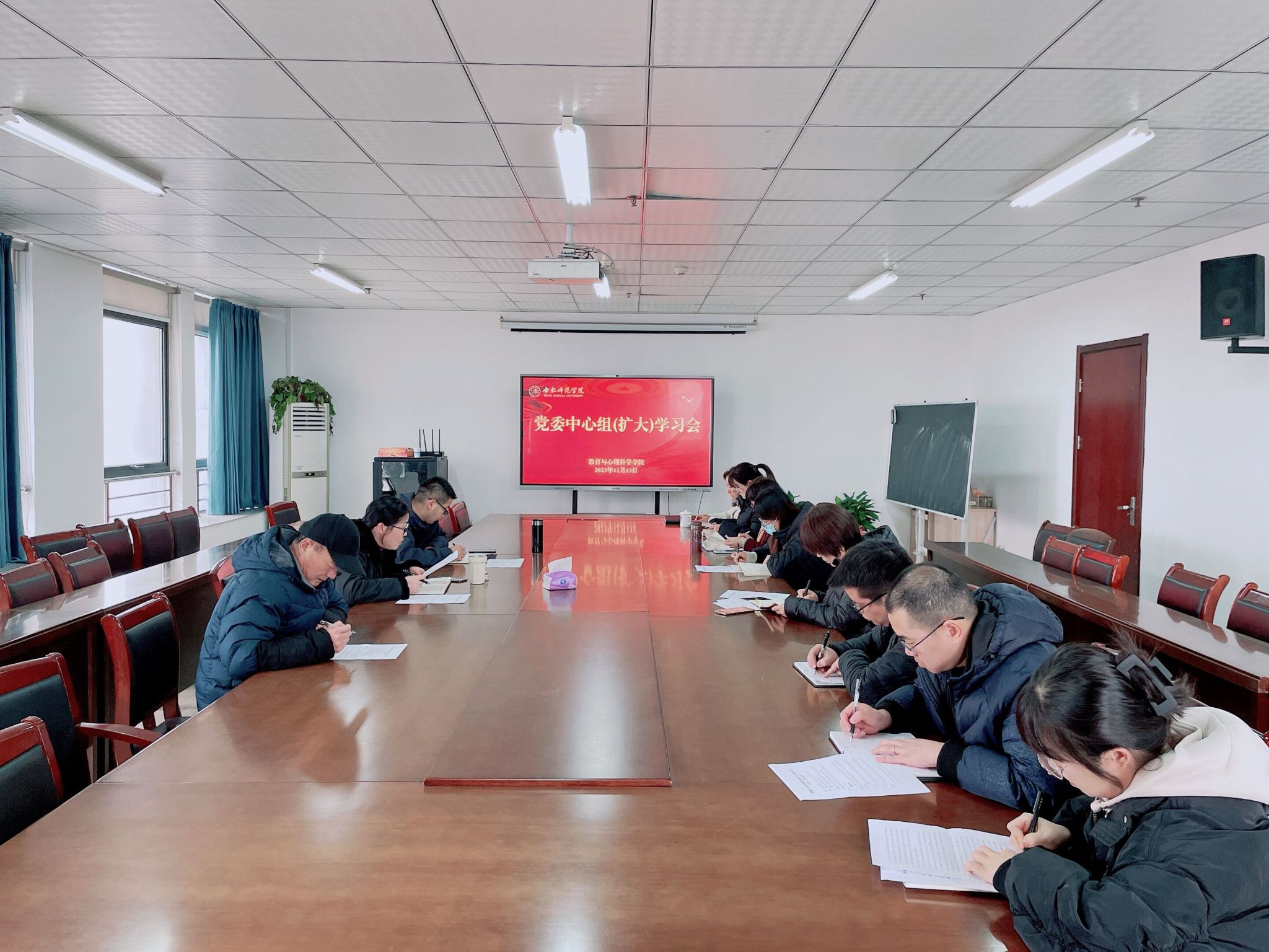 为深入学习贯彻习近平新时代中国特色社会主义思想,大力弘扬教育家精神,从教育家精神的丰富内涵中汲取砥砺奋进的精神力量,坚守立德树人初心使命,强化师德师风建设,12月13日,betway西汉姆联官网在行知楼710会议室召开党委中心组(扩大)学习,本次学习研讨的主题是“大力弘扬教育家精神,培养高素质教师队伍”,会议由学院党委书记董萍主持,学院领导班子,党委委员,各支部书记、副书记参加学习。
