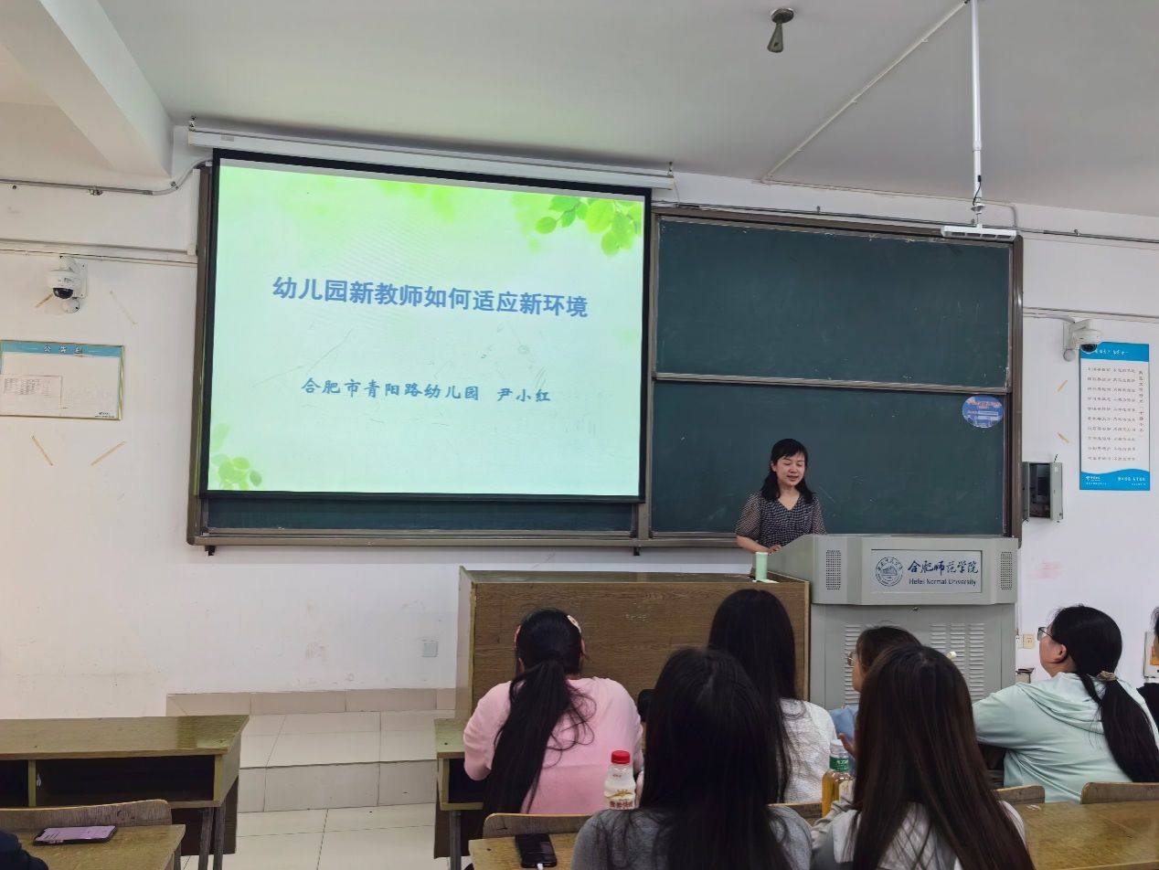 为进一步加强学前教育专业师范生与幼儿园教育一线的联系,不断提升学生适应幼儿园教育环境的综合能力,强化学生的幼儿教育实践素养,5月26日下午,betway西汉姆联官网学前教育系邀请合肥市青阳路幼儿园尹小红园长为学前教育专业学生作“幼儿园新教师如何适应新环境”专题讲座。