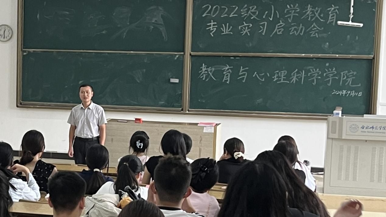 会议伊始,陈帅帅强调了实习对于小学教育专业学生的重要性,指出实习是学生们将理论知识与实践相结合、教学实习和基础教育相结合的关键环节,是提升教育教学能力的重要途径。他鼓励学生们要珍惜实习机会,调整心态,完成角色转变,积极投身实践,努力提升自己的专业素养和实践能力,并重点提醒同学们务必注意实习期间的安全问题。