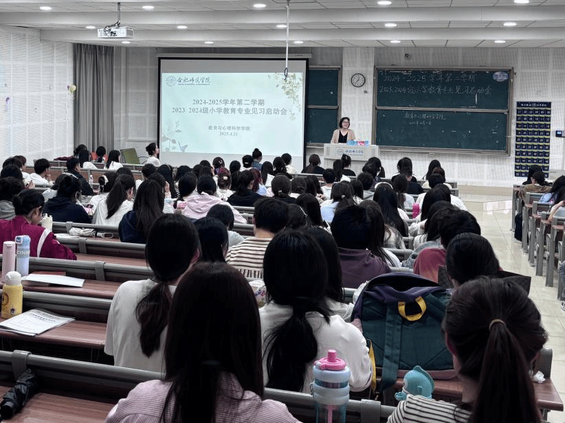 为深化学生实践能力培养,提高教育见习质量,4月11日中午,betway西汉姆联官网在滨湖校区博学楼A108教室召开2023、2024级小学教育专业见习启动会。院党委书记董萍出席会议并讲话,2023、2024级小学教育专业全体同学参加,动员会由教育系副主任唐银主持。