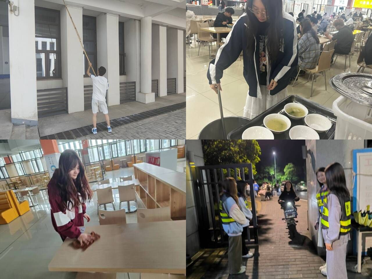 活动期间,学院2023级辅导员组织开展了劳动教育主题班会,带领全体同学学习了习近平总书记在全国教育大会、全国劳动模范和先进工作者表彰大会上的重要讲话精神,教育引导广大青年学生弘扬劳动精神。组织学生用行动响应号召,在校园内积极开展义务劳动,以小组和宿舍为单位,进行日常的寝室卫生和教室卫生的打扫,在食堂里帮助保洁人员打扫卫生,协助图书馆工作人员整理书籍,与学校安保人员共同做好校园安全保卫,从宿舍楼到教学楼再到校内的食堂操场,都留下了同学们劳动的足迹,在劳动过程中,学生们体会了劳动的乐趣,也收获了成长,为和美校园贡献了力量。