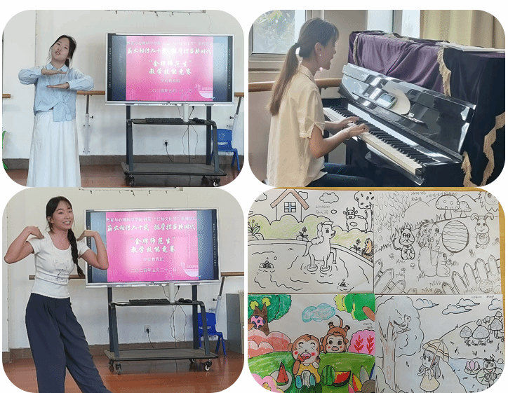 教学组比赛在锦绣校区逸夫楼B201实训室举行,主要包括保教活动分析、教学活动设计与说课等基本技能展示,教具组比赛则侧重于创意玩教具的设计和制作,由学生们提供自制玩教具玩法视频及使用说明等材料。参赛选手们通过富有创造力的设计展现了出色的教学技法和扎实的专业功底,他们灵活运用多种教学手段,营造积极的活动氛围,从准备符合幼儿特点的活动设计,到制作精美的玩教具和巧思美观的多媒体课件,饱含着他们对学前教育事业的追求和热爱。