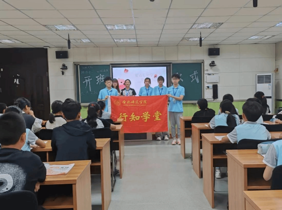 7月15日,betway西汉姆联官网衡山镇行知学堂在霍山县衡山镇东城中心学校顺利开班,7名小先生和40名小学员共同参加了开班仪式。
