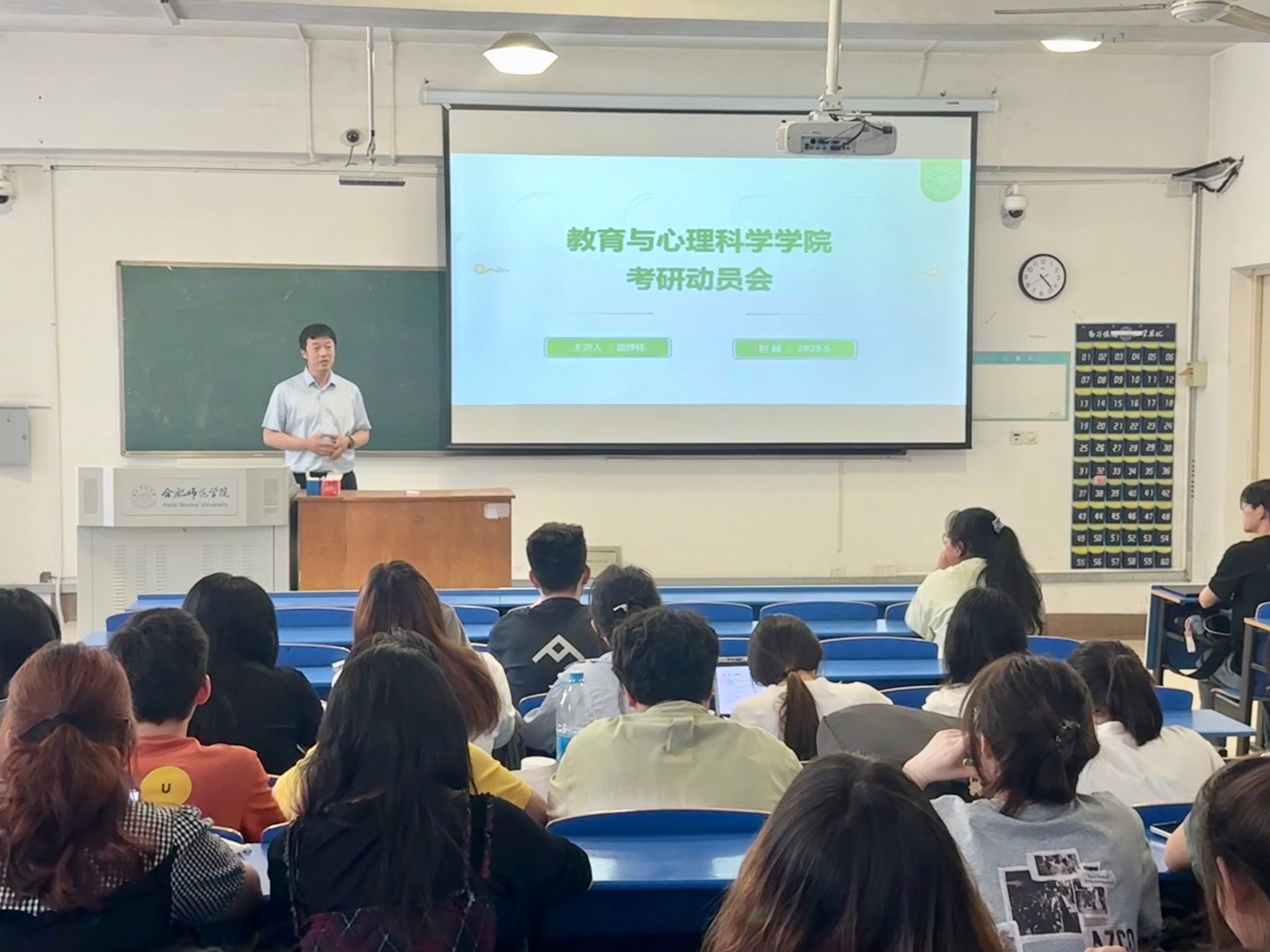 唐烨伟以“时代选择·个人成长·未来赛道”为主题,从国家发展战略与产业升级对高层次人才的迫切需求出发,深刻阐释了考研作为时代趋势的必然性。随后,引导同学们思考如何在大学期间通过夯实专业基础、培养学术思维、关注前沿领域并积极参与实践,实现个人价值的最大化。他指出,考研是深化专业认知、拓展发展空间、提升就业层次的关键路径,鼓励同学们结合心理学与学前教育专业的发展前景,早做规划、明确目标、坚定信念,为未来职业发展奠定坚实基础。