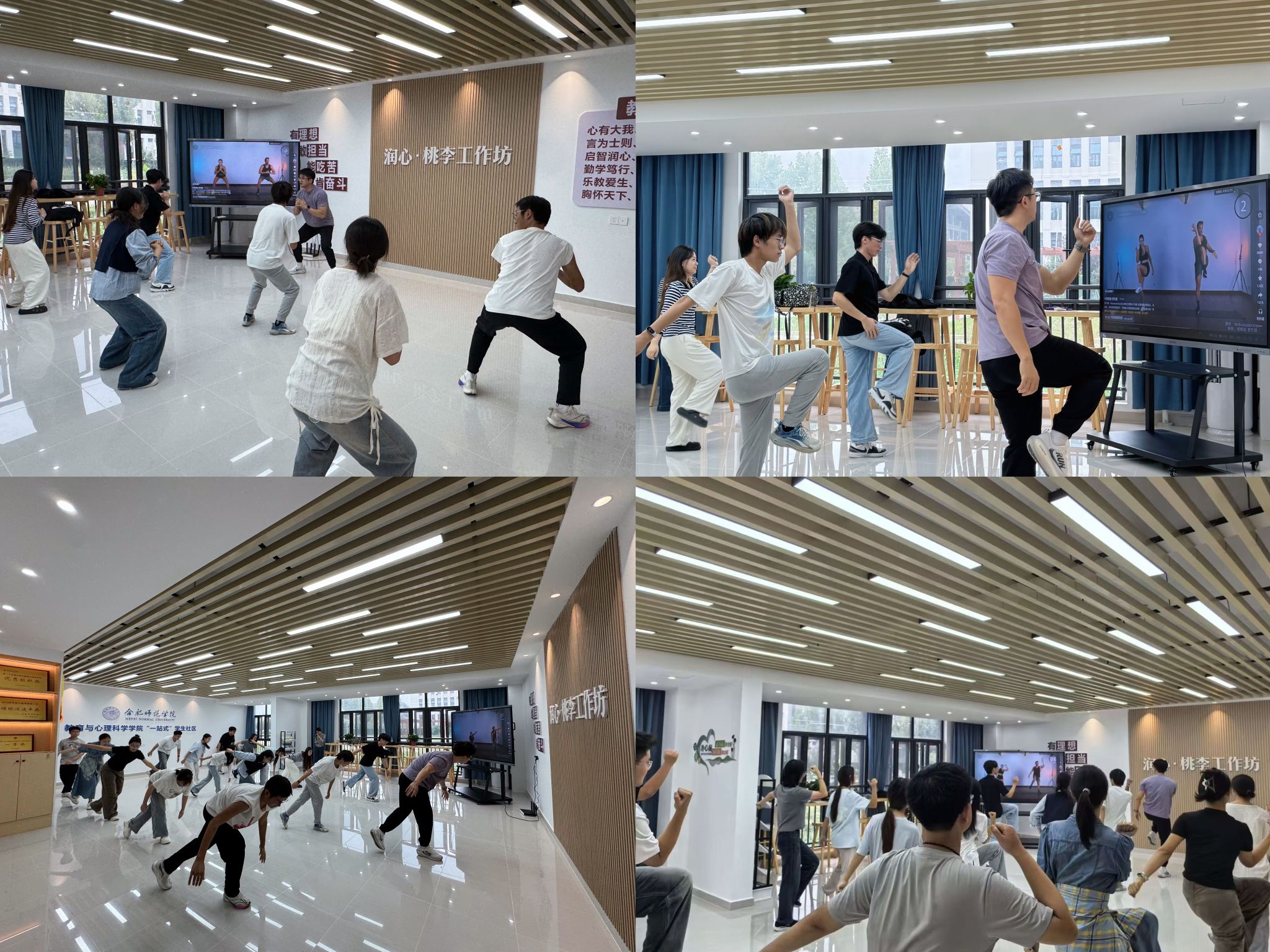 为深入贯彻落实《体重管理年活动实施方案》,响应学校体育嘉年华活动号召,倡导文明健康的生活理念,引导大学生以积极姿态投入学习生活,近日,betway西汉姆联官网匠心打造的“导员带你来运动”品牌活动在“润心桃李工作坊”学生一站式社区内正式拉开帷幕。首场活动由拥有体育运动训练学专业背景的辅导员吴勇老师亲自带队,一场酣畅淋漓的TABATA燃脂训练,为同学们的校园生活注入了全新的活力。活动当天,学生一站式社区的活动空间化身为充满动感与激情的“迷你健身房”。