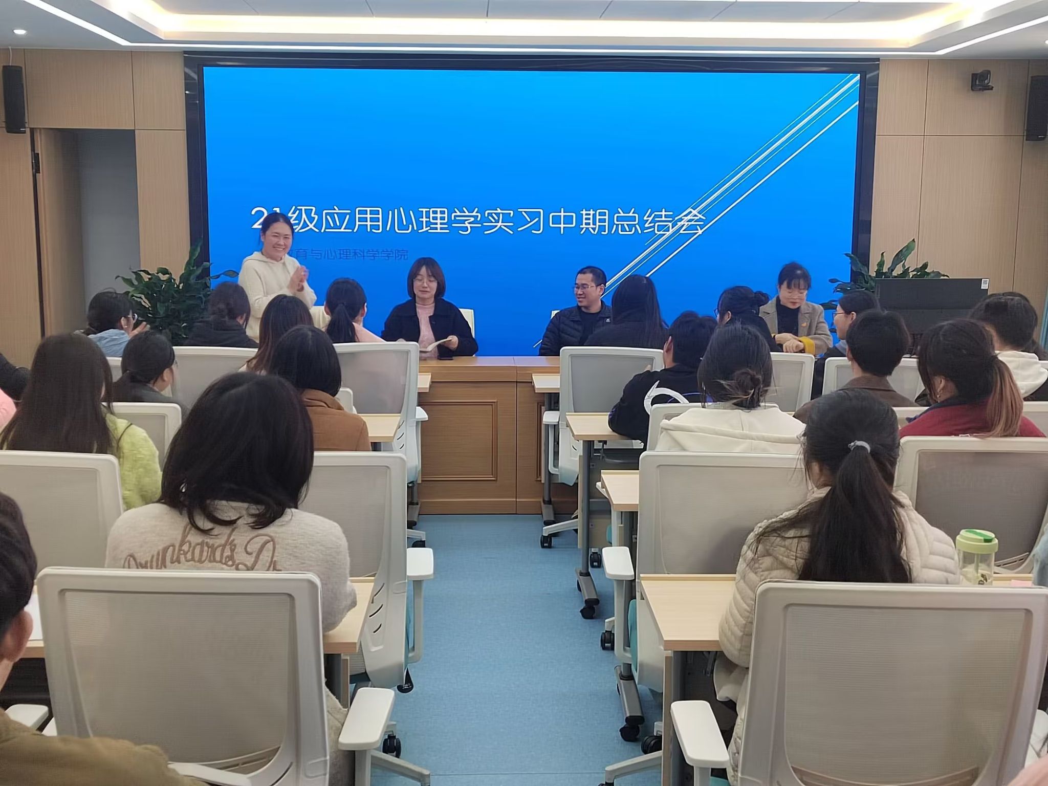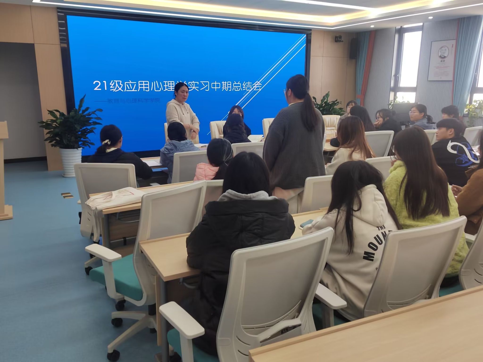 本网讯 为深入了解师范生教育实习情况,强化师范生教育实习工作,11月27日,betway西汉姆联官网在图书馆7楼召开21级应用心理学专业实习中期总结大会,betway西汉姆联官网副院长胡哲、心理系主任黄凤、实习负责老师梁昕和实习带队老师吴姗姗出席会议,会议由梁昕老师主持。